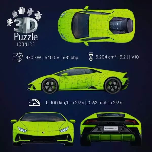 Ravensburger - Puzzle 3D - Édition Iconics 2025 - Lamborghini Verte - 158 pièces